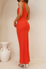 Ruched Single Shoulder Maxi Dress