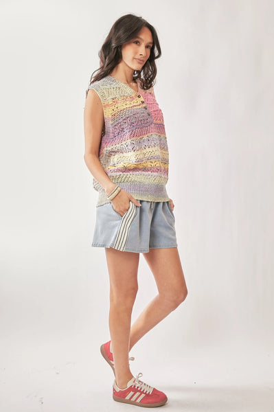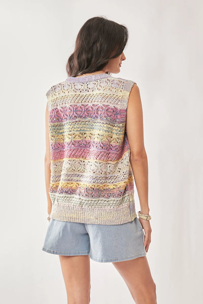 Davi & Dani Multi Color Crochet Sleeveless Knit Vest Top
