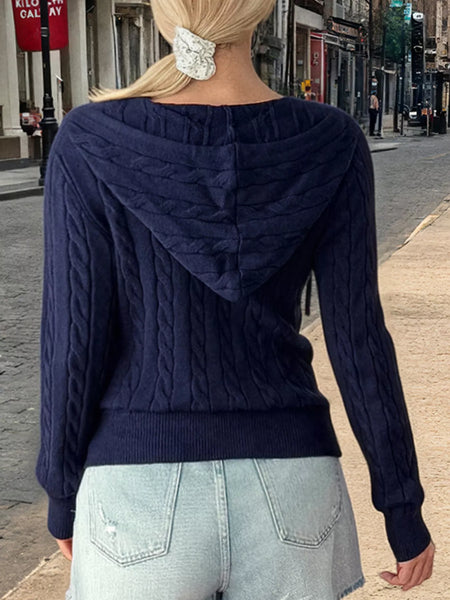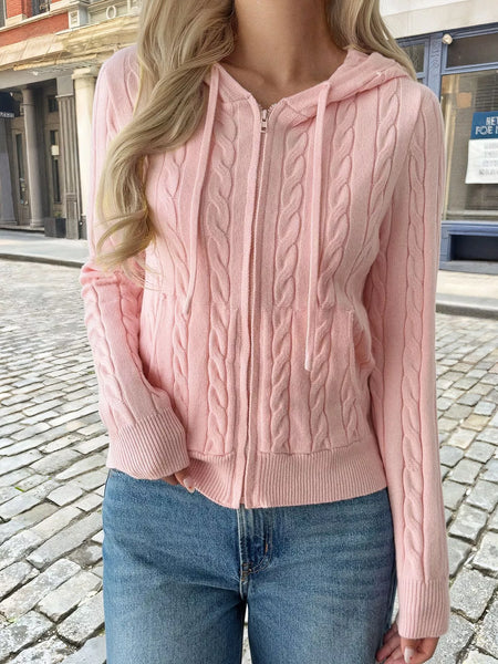 - Features:Cable-Knit,Zipper,Drawstring