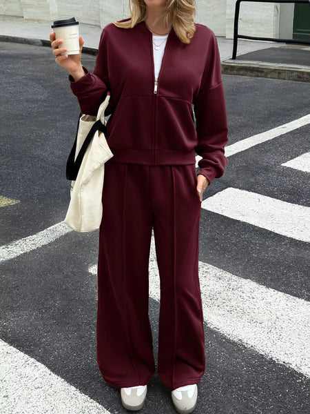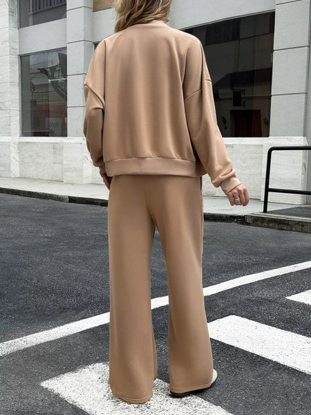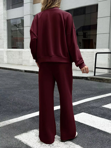 Zip Up Drop Shoulder Top and Pants Set