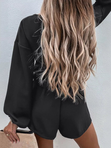 Casual Solid Color Top and Drawstring Shorts Two-Piece Set