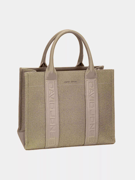 David Jones Canvas Tote Handbag with Contrast Leather Handles