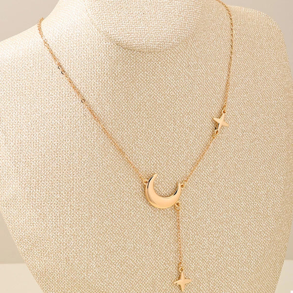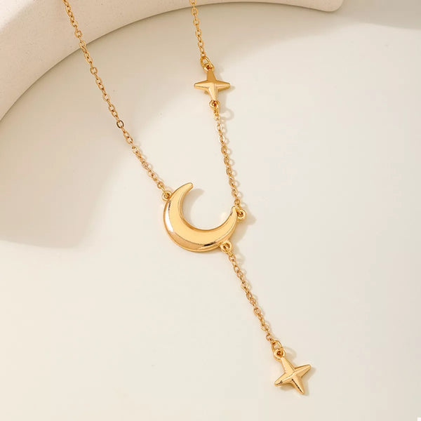 18K Gold-Plated Moon and Star Gold Chain Necklace
