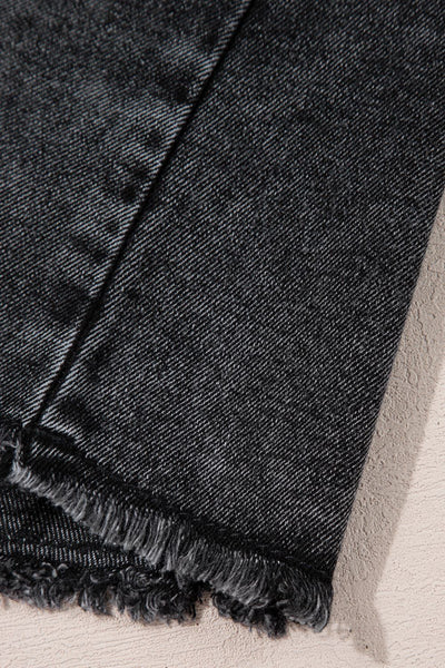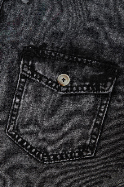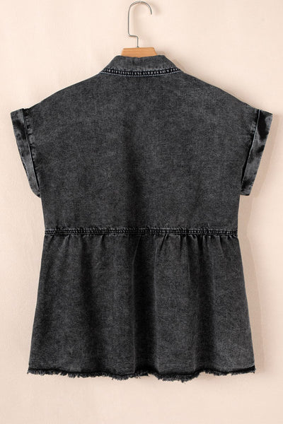Short Sleeve Flap Pocket Button Up Raw Hem Denim Shirt