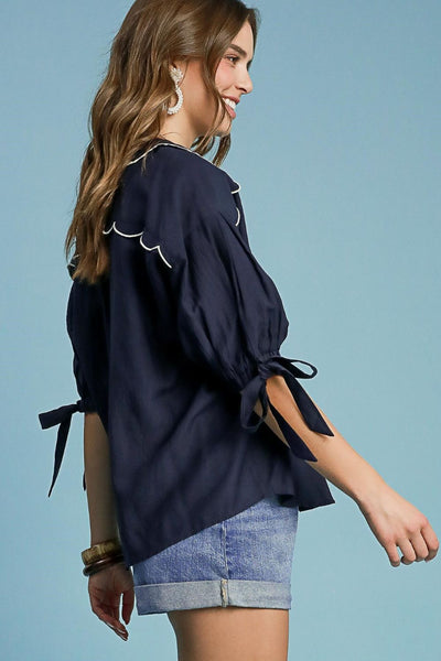 Embroidered Detail Button Down Shirt is a classic garment with a touch of elegance. The intricate embroidery adds a unique and stylish flair to this timeless button-down style. Perfect for adding a pop of sophistication to your outfit. Versatile and chic, this shirt is a wardrobe essential for those looking to elevate their look with a simple yet charming embroidery detail.