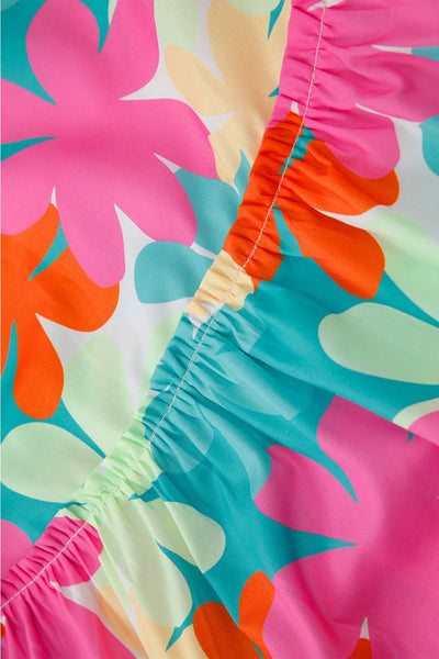 Floral Print Bubble Sleeve V Neck Peplum Blouse