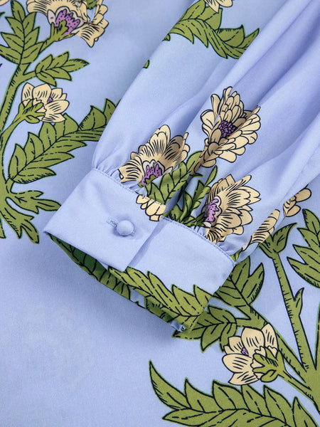 Floral Print Long Sleeve Tie Neck Blouse