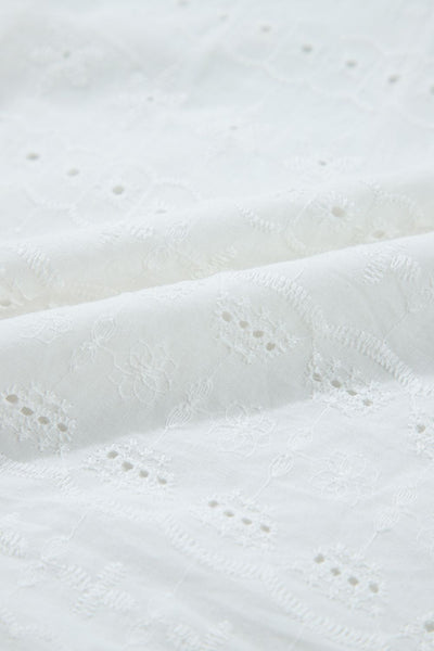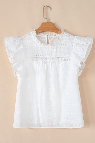 Lace Round Neck Flutter Sleeve Eyelet Blouse