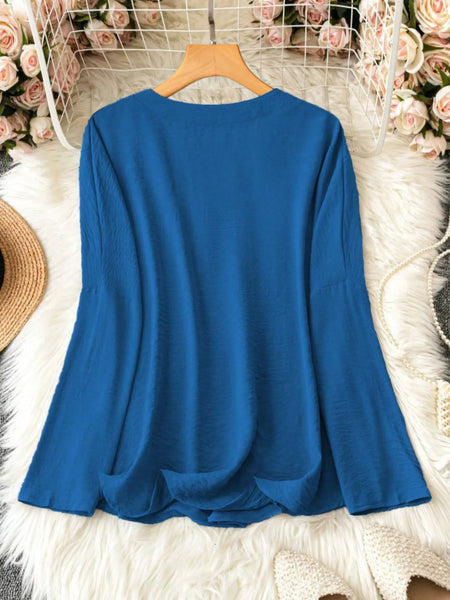 Notched Long Sleeve Casual Blouse