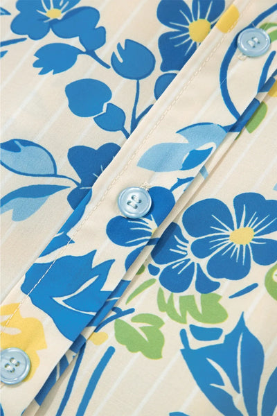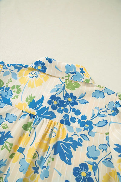 Printed Puff Sleeve Button Down Summer Shirt