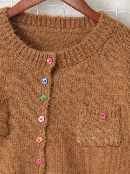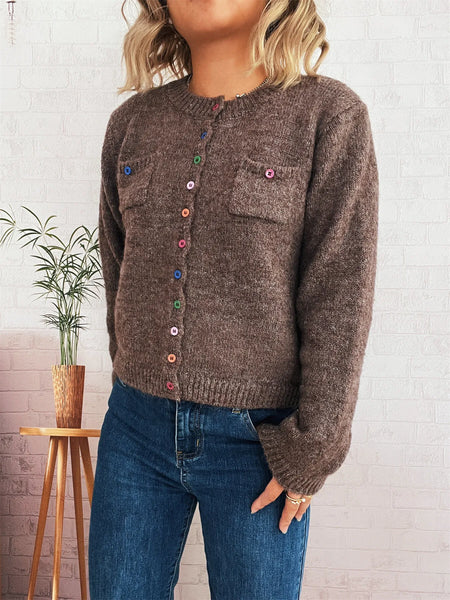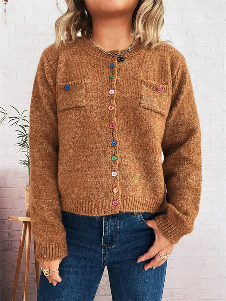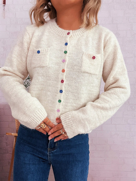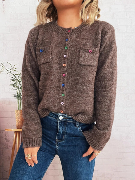 Button-Up Ribbed Hem Cardigan with Chest Pocket