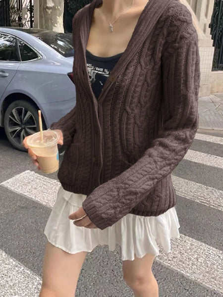 - Features:Cable-Knit,Buttoned