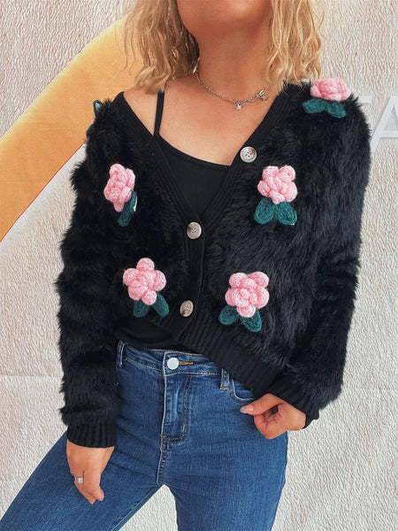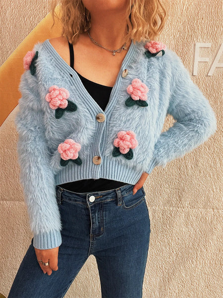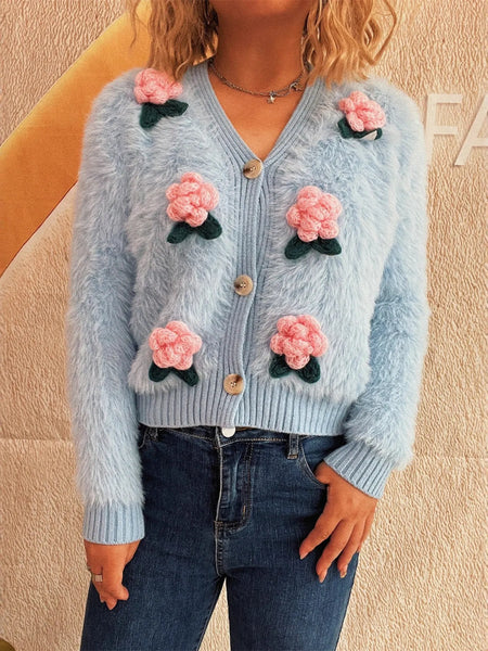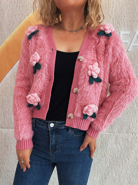 Flower Fuzzy Button-Up Cardigan