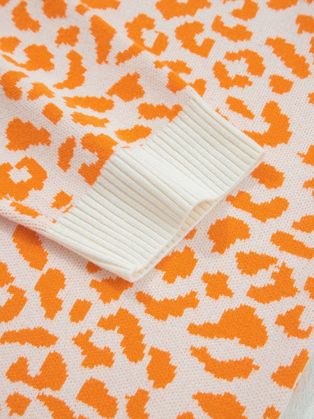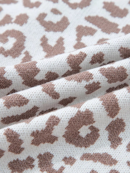 Leopard Drop Shoulder Chunky Knitted Cardigan