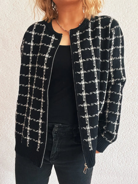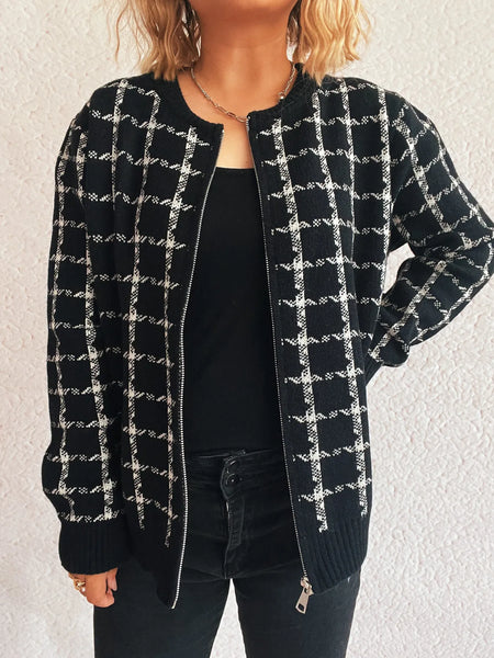 Plaid Pattern Zip Up Cardigan