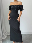 Ribbed Knit Puff Sleeve Casual Mini Dress