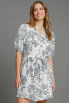 Plus Size Printed V-Neck Long Sleeve Mini Dress