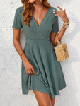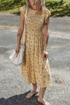 Plus Size Printed V-Neck Short Sleeve Midi Dress