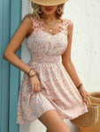 Ruffled Floral V-Neck Flounce Sleeve Dress
