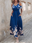 Plus Size Printed V-Neck Short Sleeve Maxi Dress