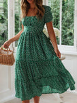 Plus Size Floral Print V-Neck Puff Sleeve Summer Dress
