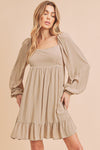 Smocked Round Neck Balloon Sleeve Midi Dress