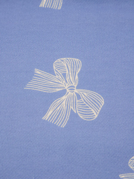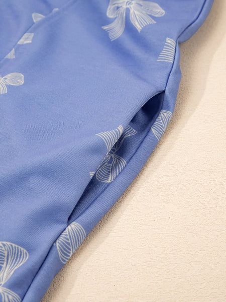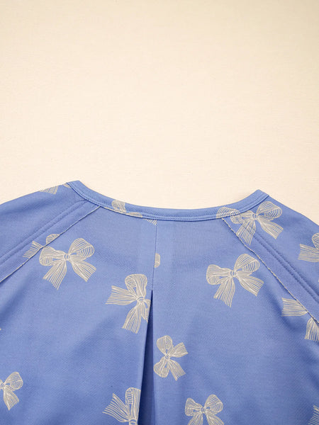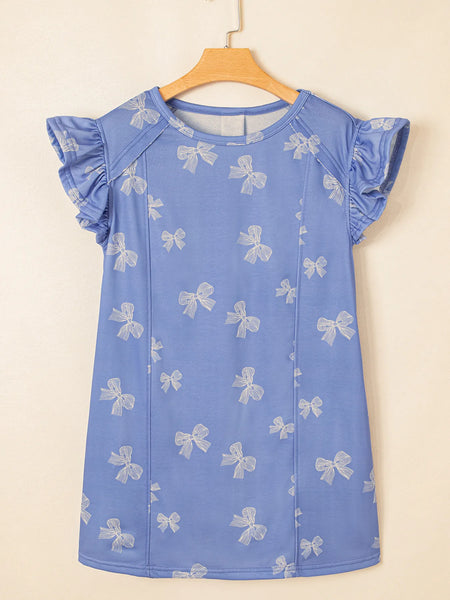 Bow Knot Print Crewneck Ruffled Sleeve Shift Mini Dress
