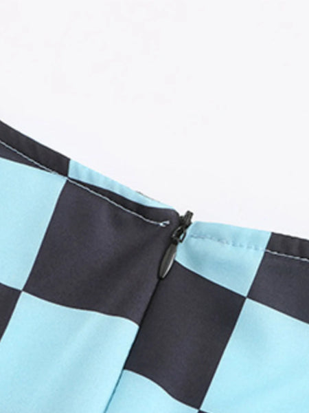 Checkered Short Sleeve Tiered Mini Dress