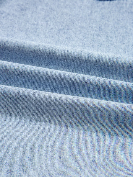 Chest Pocket Raw Hem Denim Loose Shirt Dress