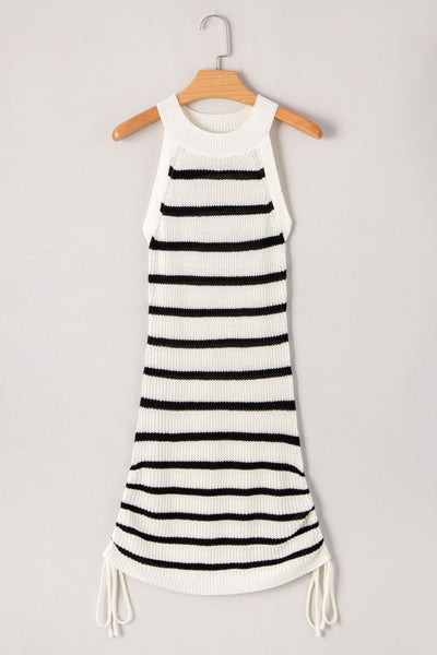Contrast Striped Drawstring Detail Sleeveless Sweater Dress