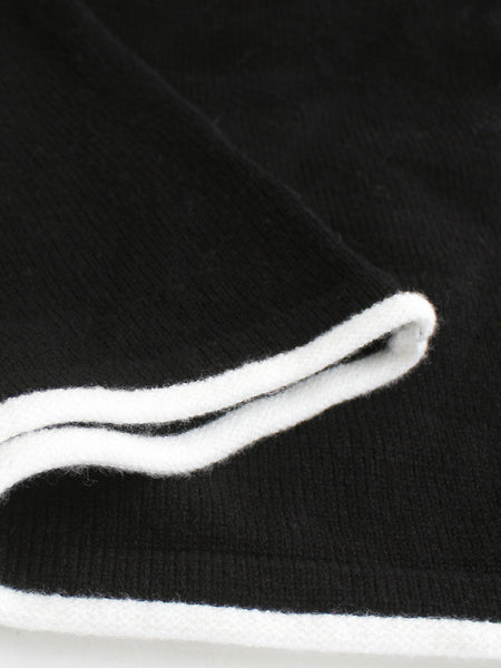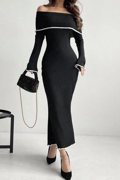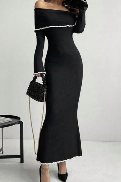 Contrast Trim Off-Shoulder Long Sleeve Maxi Sweater Dress