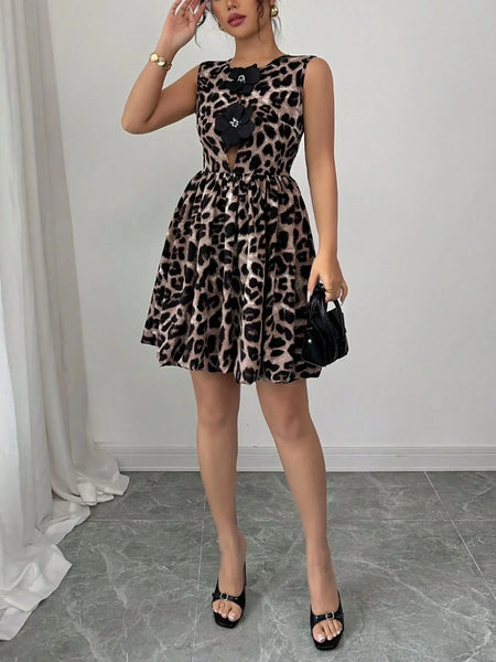 Leopard Print Sleeveless Fit and Flare Mini Dress