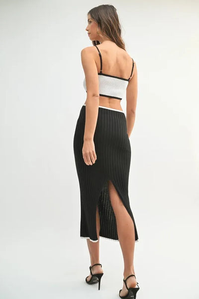 MABLE Ribbed Knit Color Block Cutout Midi Dress