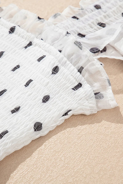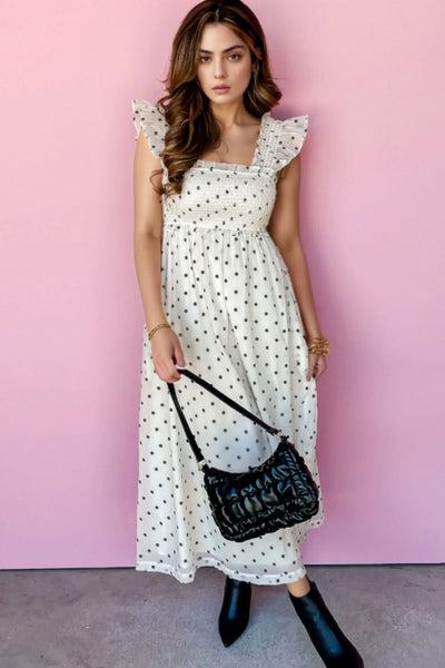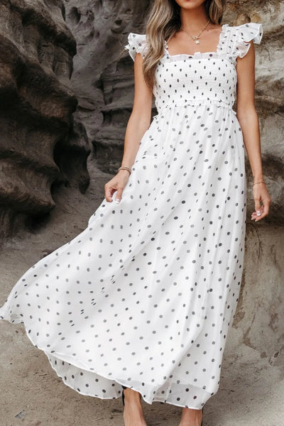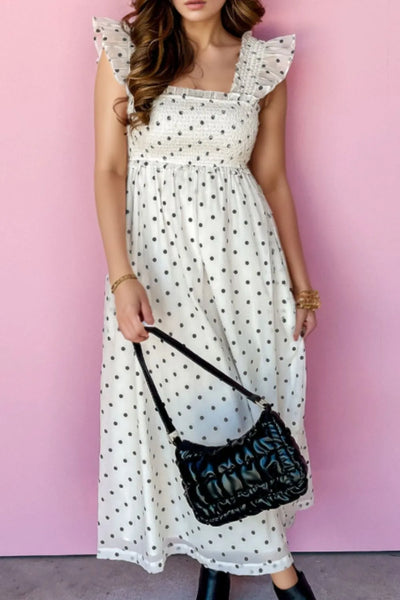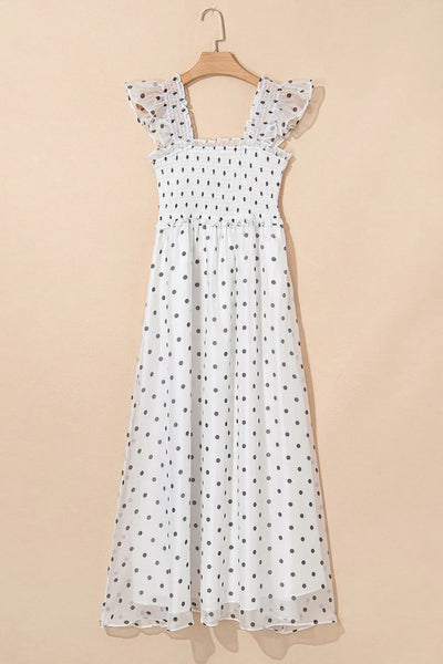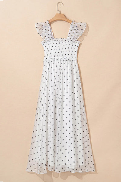 Polka Dot Ruffle Sleeve Smocked Midi Dress