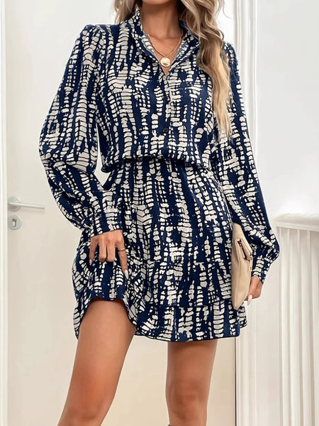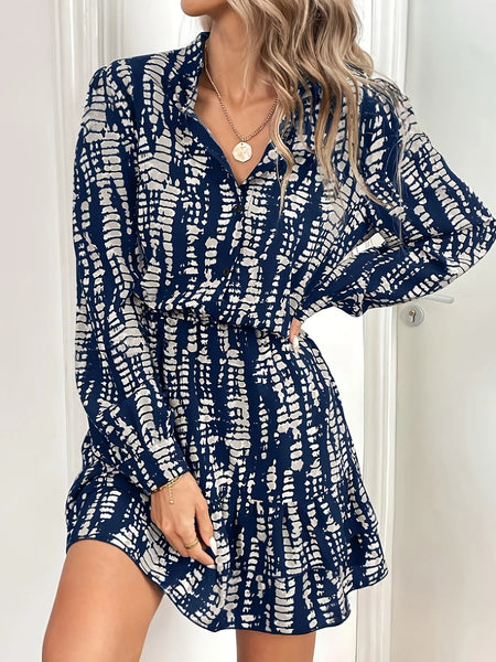 Printed Long Sleeve Shirt Dress