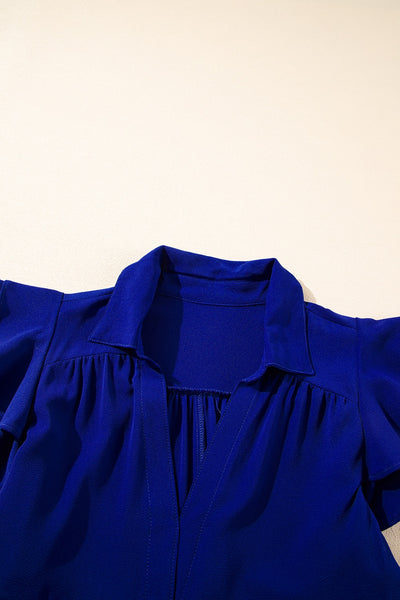 Ruffled Short Sleeve Collared V Neck Tiered Midi Dress