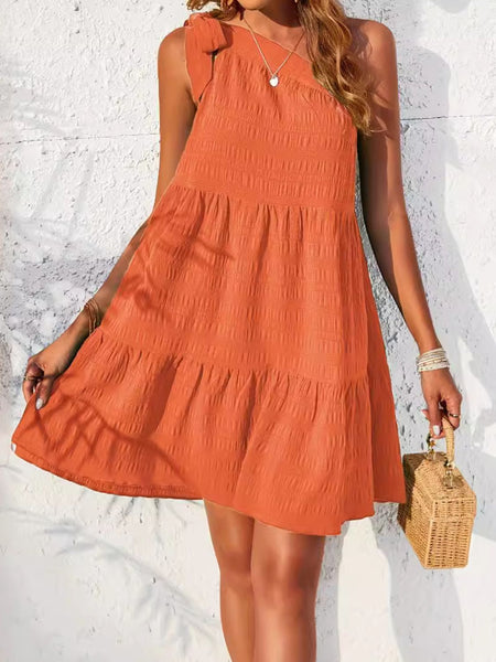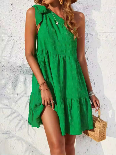 Textured Tied Single Shoulder Mini Dress
