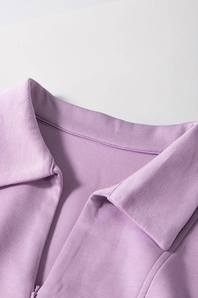 Short Sleeve Zipper Collared Elastic High Waist Romper