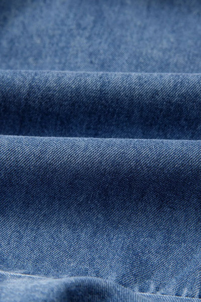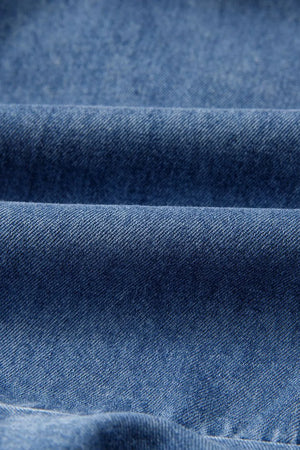 Spaghetti Straps V Neck Belted Ruffled Leg Chambray Romper