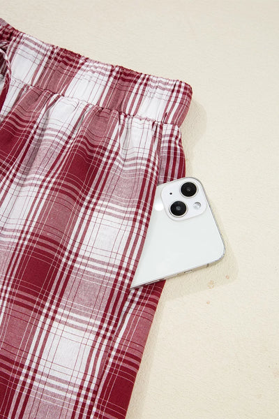 Plaid Long Sleeve Shirt and Drawstring Shorts Lounge Set