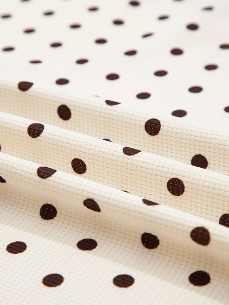Polka Dot Notched Long Sleeve Top and Drawstring Joggers Lounge Set
