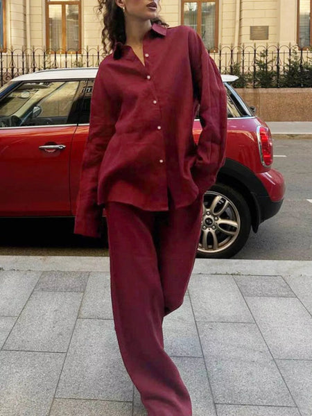Relaxed Fit Button Up Shirt and Pants Two-Piece Set