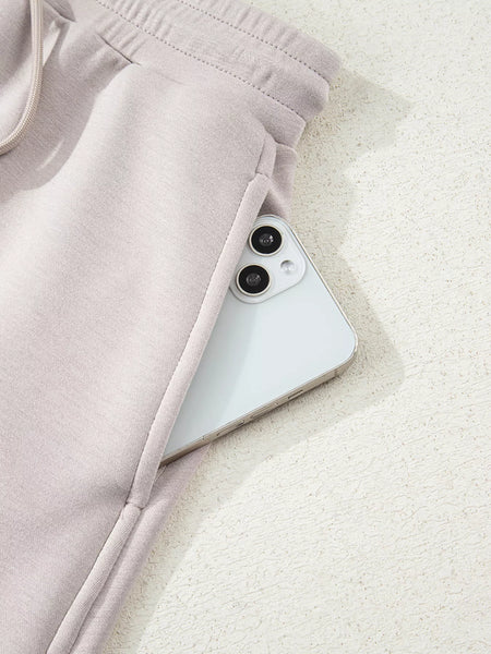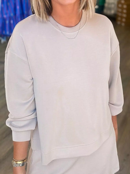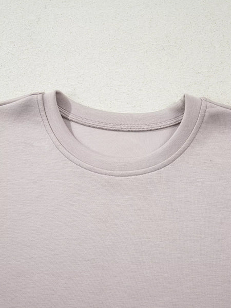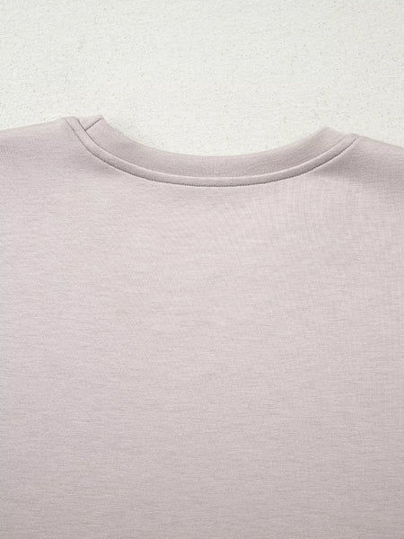 Solid Color Drop Shoulder Pullover and Drawstring Mini Skirt 2pcs Outfit