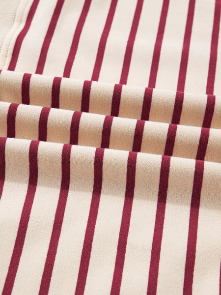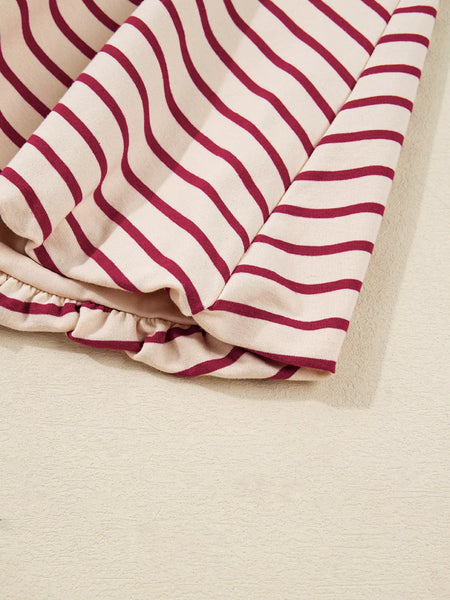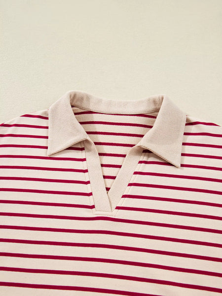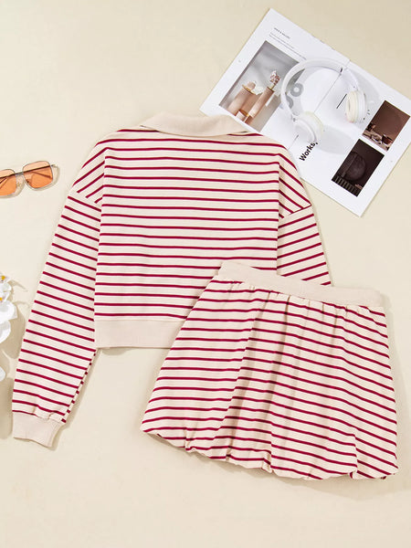 Stripe Cropped Collared Drop Shoulder Pullover and Bubble Mini Skirt Set