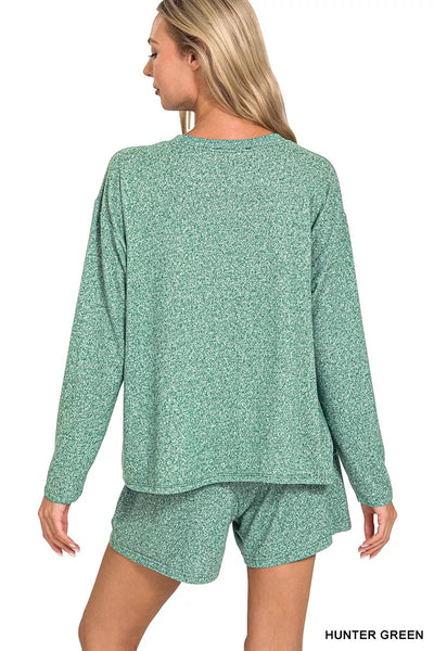 Zenana Soft Melange Long Sleeve Tee and Shorts Set