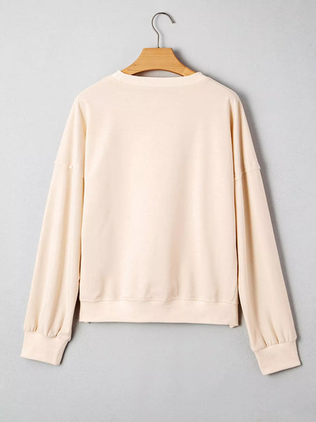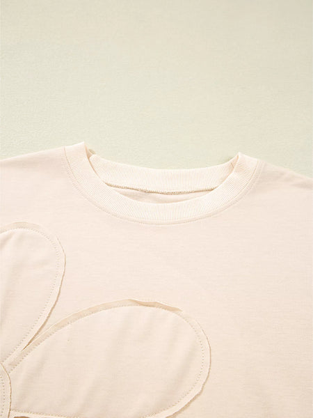 Raw Edge Flower Patch Drop Shoulder Casual Top