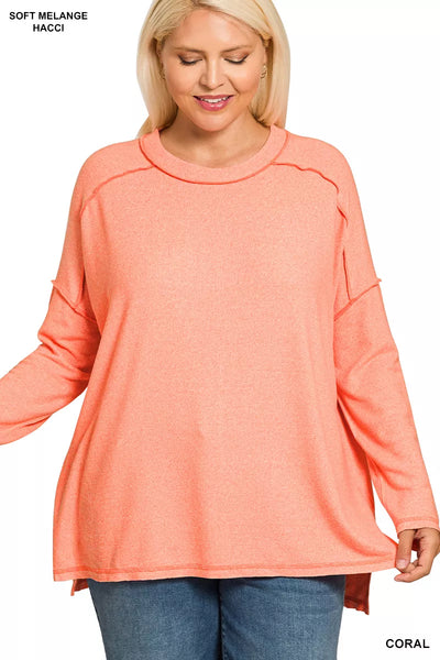 Zenana Full Size Melange Hacci Exposed Seam Hi-low Tee