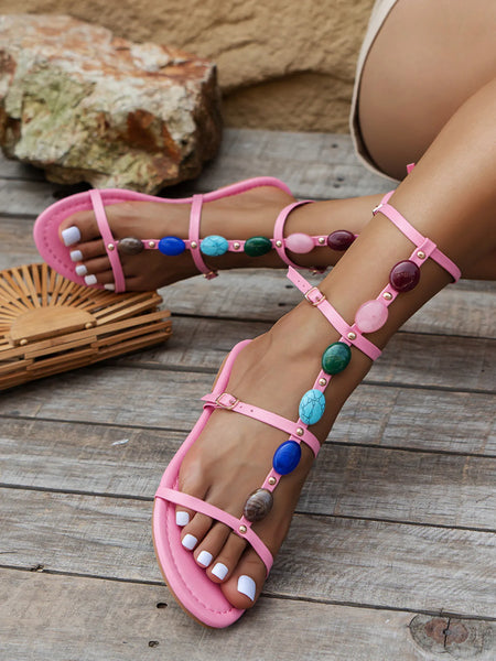 Multiple Adjustable Ankle Straps Sandals with Buckle