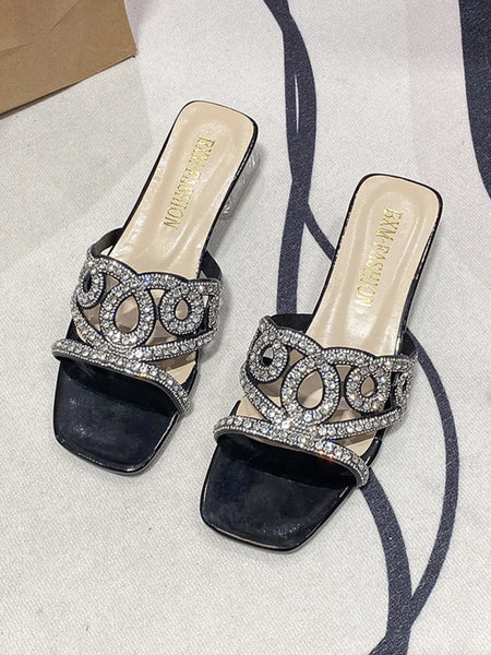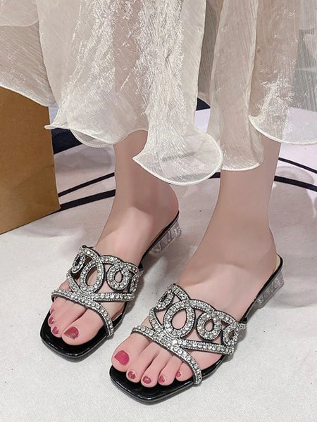 Rhinestone Embellished Block Heel Sandals