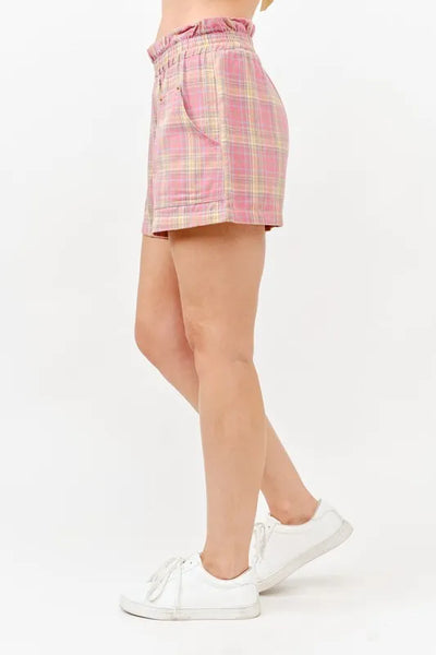 These shorts feature a classic plaid print and smocked detailing for a comfortable fit. Perfect for a casual and stylish look, these shorts can be dressed up or down depending on the occasion. Pair them with a simple tee or blouse for an effortless and chic outfit.